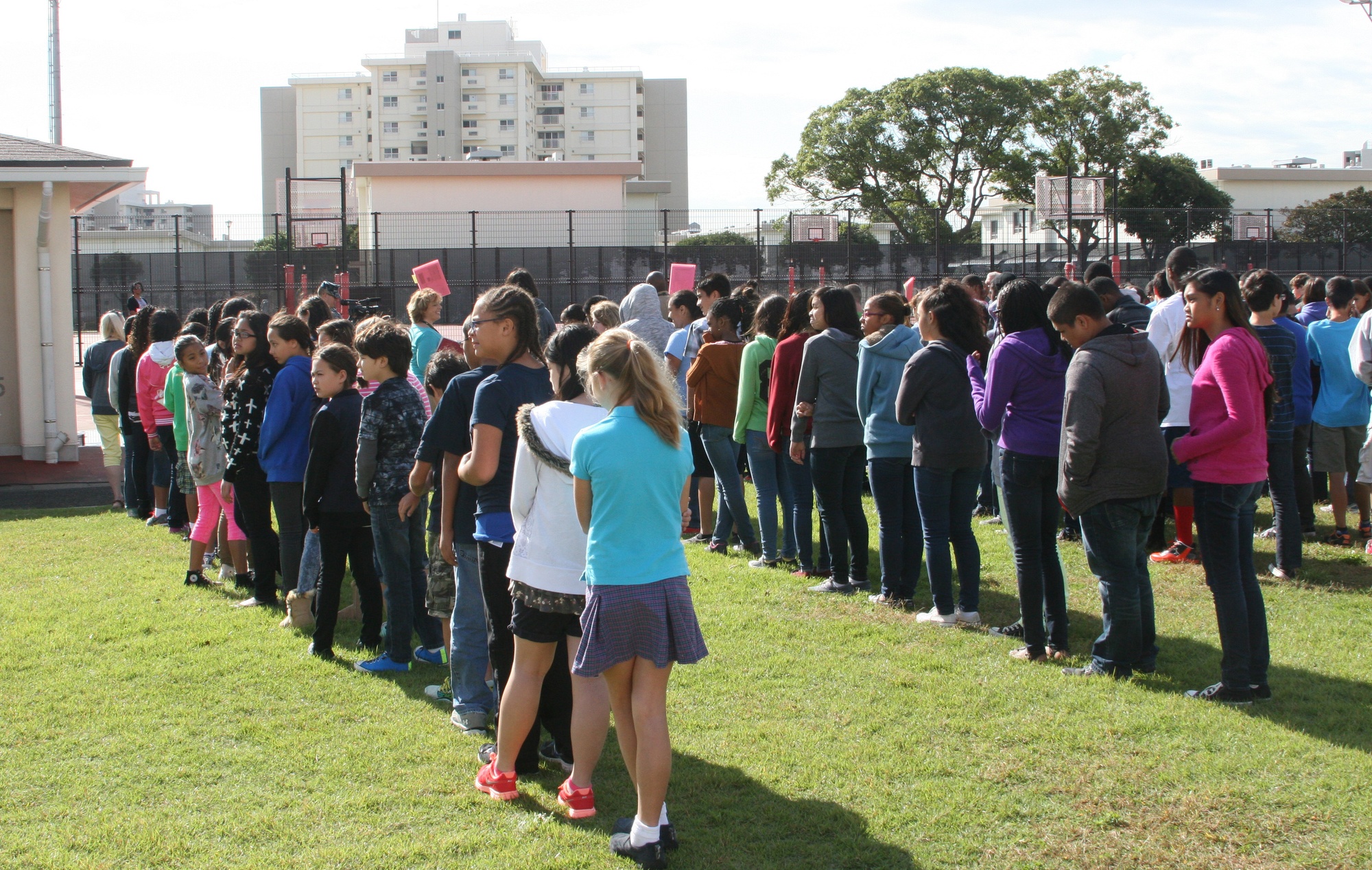 …only to behold dozens of lines of students exiting the classroom wings of the complex in a safe and orderly fashion. Teachers stood like shepherds overseeing their fleeing flocks, shushing the gigglers and keeping careful count to ensure none had been separated from the herd. Most assumed it was a drill, though the confusion on certain administrators faces spoke volumes.